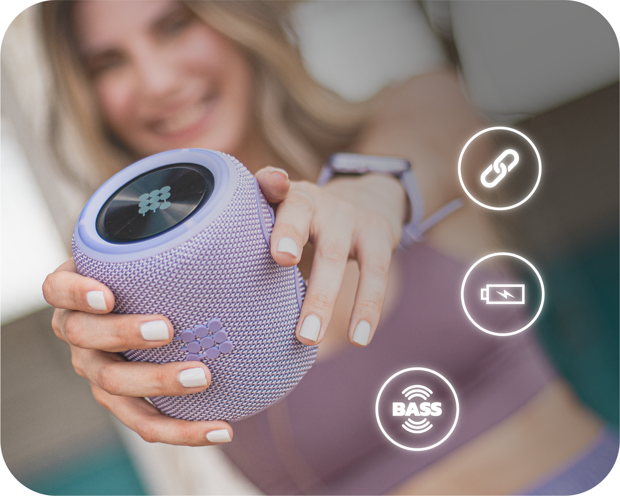Descubre la bocina inalámbrica Cubitt Power Go, perfecta para llevar tu música a donde quiera que vayas. Con su diseño compacto y potente sonido, esta bocina Cubitt es ideal para cualquier aventura. Disfruta de hasta 20 horas de reproducción continua y una resistencia al agua IPX7. Tu compañera perfecta para acompañarte en cada momento.
