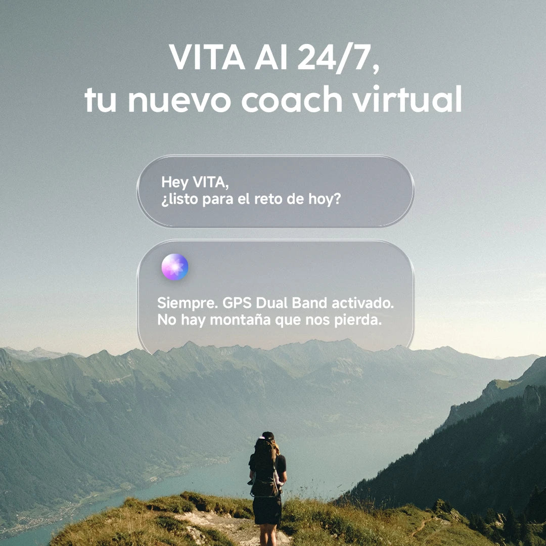 Mantente a la vanguardia con el exclusivo VITA AI Assistant, AI Coach, Readiness Score y el análisis avanzado del sueño con Sleep Score para optimizar tu rendimiento y recuperación. Disfruta de una impresionante pantalla AMOLED ultra-brillante de 1.48”, llamadas por Bluetooth y hasta 14 días de duración de batería.