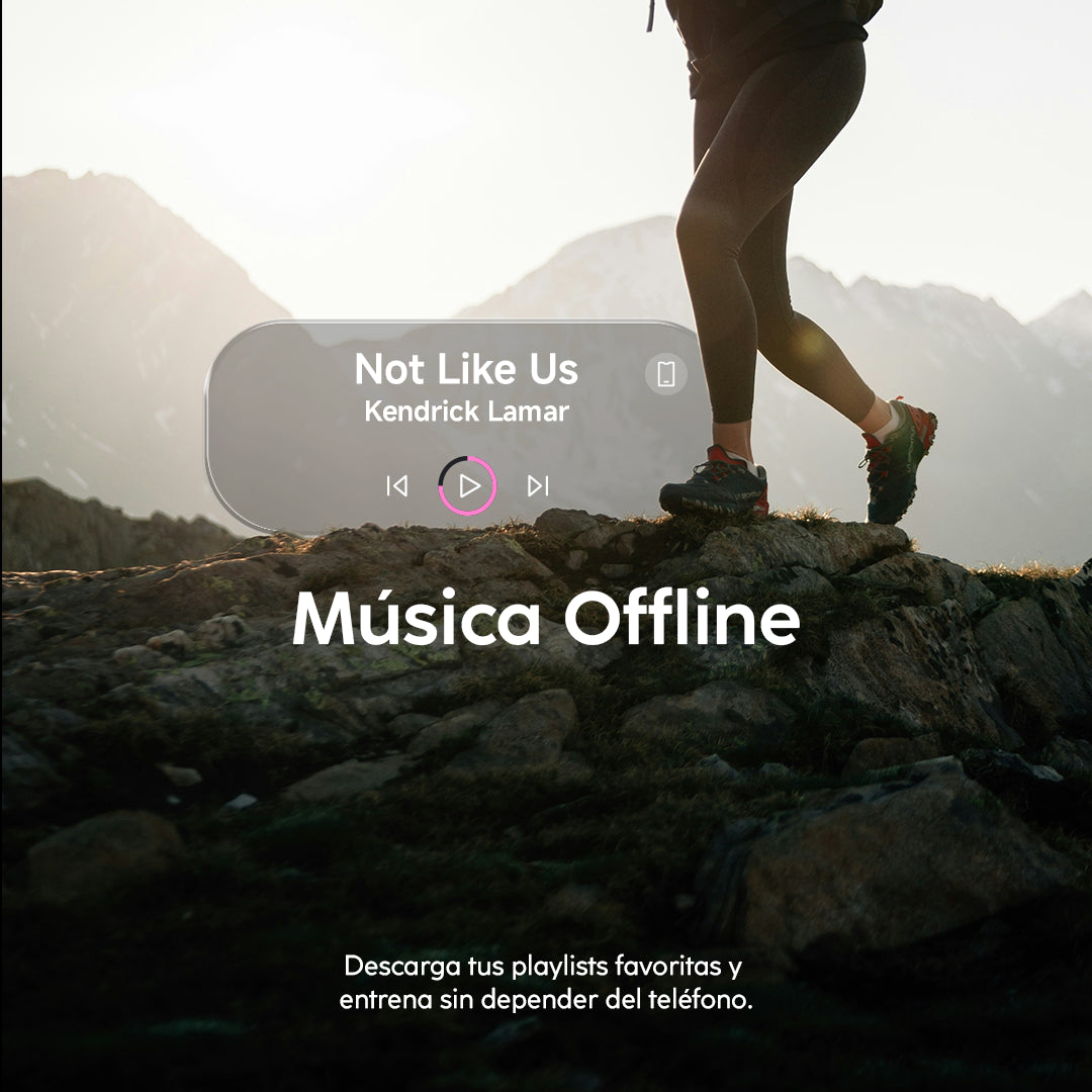 Atiende llamadas directamente desde tu muñeca con Bluetooth Calling, recibe notificaciones inteligentes con respuestas rápidas y disfruta tu música sin conexión a internet estés donde estés. VIVA Lite también es tu compañero de entrenamiento, con más de 100 modos deportivos, rutinas animadas y un seguimiento de salud avanzado que incluye frecuencia cardíaca, SpO₂, VO₂ Max, análisis del sueño y control de estrés.